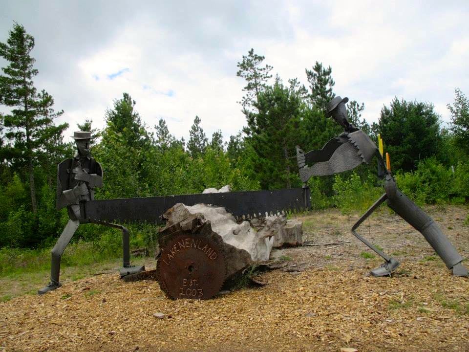 Here is my best attempt to describe Lakenenland. It is a sprawling outdoor sculpture park. A one-way road allows cars and foot traffic to tour its various exhibits, which range from U.P. culture (mining, logging, sled dogs) to political statements (pro-union, anti George Bush) to goofy weird creations (souped up snowmobiles). There is a bandstand and a massive fire pit. There are port-a-pottys (!) and places to set up camps around a small pond. Coming here last night felt like coming into a dream. This is the kind of place that might seem natural in Portland or at Burning Man but never in a million years would I expect to find in here. I’m proud of Michigan right now.