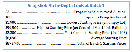 Round 1 of the auction runs from today, September 4, through Wednesday, September 24. During this period, bidding prices start at whatever amount is owed in property taxes. Any properties that are unsold after this round will go up for auction again in Round 2 which begins in mid-October, where bidding will start at only $500. The bidding for an individual parcel happens over a 2-week period, so properties released for auction today will not fully close until September 17th.