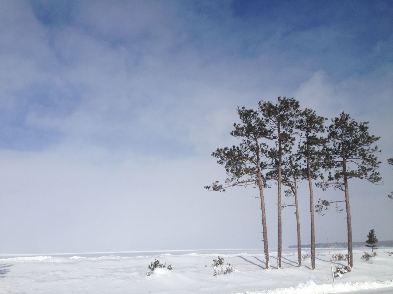 The drive is gorgeous. The sky is clear and crisp and the storm has blasted snow on the trees in ways I’ve never seen. It looks like a badly-done winter scene in a Hollywood movie with a who’s director has never seen snow. I imagine him yelling to the set designer: “More snow! It doesn’t look real enough! Make it look realer than real!” Mom sees it beautifully; she says the storm has birch-ified every tree.