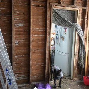 Almost every Saturday through the winter of 2016, Dad would take the hour-or-so drive to my house, sometimes dragging a trailer full of lumber or meeting me at Home Depot. We reinforced sagging beams in my ceiling, pulled out ancient electrical wiring, laid tile I found on the side of the road, hung drywall, and built a brand new tiny bathroom for my ground floor. Then we took a saws-all to the stupid wall that separated my stupid kitchen from the stupid room next to it and created a magically larger space.