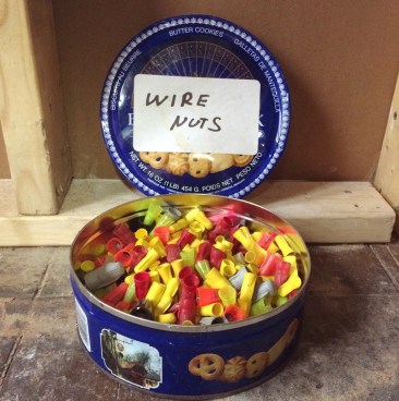 How strange it is that the knowledge and practice of electrical work has twisted like a wire between the generations, linking hopeful fathers-in-law to their new sons in series. When Dad cracked open the tin, the scent was instantly nostalgic, though I don’t know if I’ve ever smelled it before. It was old, and metallic, and potent. We set up the lighting for the new bathroom that day and rummaged around in that cookie tin for a wire nut that was just the right size. It’s a part of my house now.